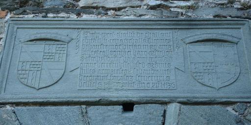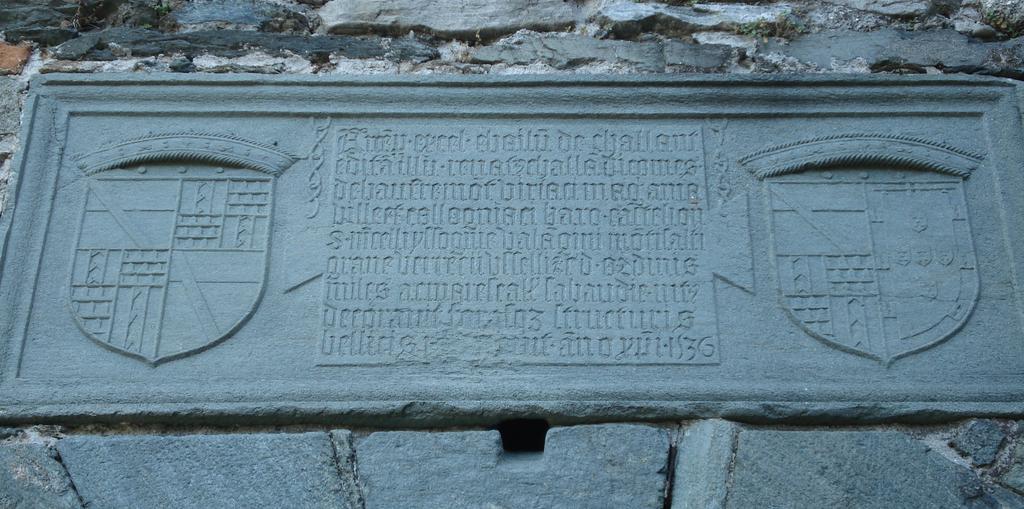 Keywords: Iscrizionerenato.jpg it Iscrizione sull'ingresso del castello di Verres in Valle d'Aosta Own Postcrosser 2009-08 Castello di Verrès