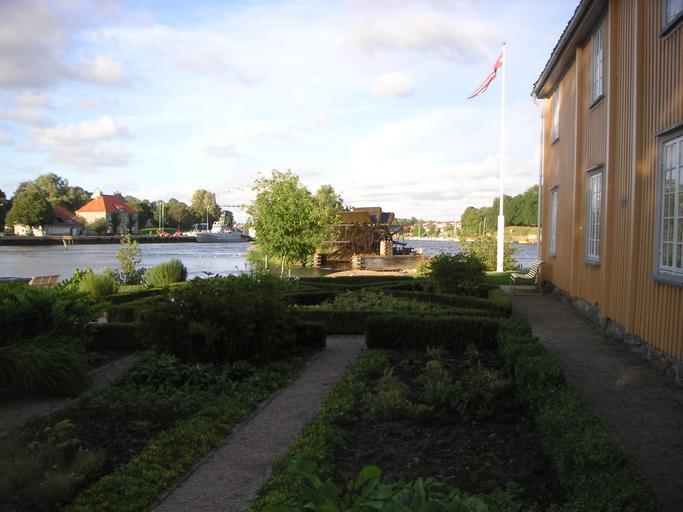 Keywords: Isegranhagen og møllerhjul.JPG The isegran garden and water wheel own Own photo 2006-08-30 John Erlandsen Public domain Isegran Watermills in Norway Glomma Undershot water wheels Gardens and parks in Norway Gardens and parks in Østfold