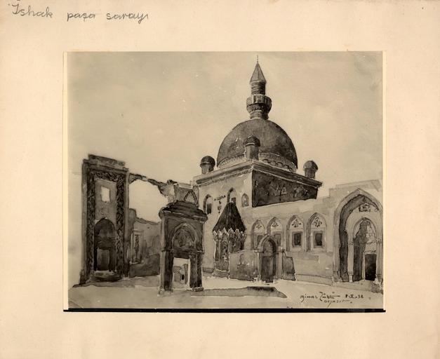 | Keywords: i̇shak paşa sarayı ishakpaşasarayı ishak pasha palace ishakpashapalace çolak abdi paşa çolakabdipaşa ii. i̇shak paşa iiishakpaşa mimari architecture restorasyon restoration turkish palace turkishpalace doğubayazıt ağrı salt araştırma saltaraştırma salt research saltresearch salt online saltonline monochrome photo border surreal www.archives.saltresearch.org/R/-?func=dbin-jump-full&amp... 1685’te Doğubeyazıt Sancak Beyi Çolak Abdi Paşa döneminde yaptırılmaya başlanan İshak Paşa Sarayı, 1784’te Çıldır Valisi II. İshak Paşa döneminde son şeklini aldı. Osmanlı, Fars ve Selçuklu uygarlıklarının mimari üslubunu birleştiren ve kesme taştan yapılan saray, iki avlu ile bu avlulardaki yapı topluluğundan meydana gelir. 366 odalı olarak inşa edilen yapıda su, kanalizasyon ve ısıtma sistemleri bulunmaktadır. 2010’da Kültür ve Turizm Bakanlığı’nın desteğiyle başlatılan restorasyon çalışmalarıyla sarayın bazı bölümleri cam tavanla kapatılmıştır. SALT Araştırma, Ali Saim Ülgen Arşivi www.archives.saltresearch.org/R/-?func=dbin-jump-full&amp... 1685’te Doğubeyazıt Sancak Beyi Çolak Abdi Paşa döneminde yaptırılmaya başlanan İshak Paşa Sarayı, 1784’te Çıldır Valisi II. İshak Paşa döneminde son şeklini aldı. Osmanlı, Fars ve Selçuklu uygarlıklarının mimari üslubunu birleştiren ve kesme taştan yapılan saray, iki avlu ile bu avlulardaki yapı topluluğundan meydana gelir. 366 odalı olarak inşa edilen yapıda su, kanalizasyon ve ısıtma sistemleri bulunmaktadır. 2010’da Kültür ve Turizm Bakanlığı’nın desteğiyle başlatılan restorasyon çalışmalarıyla sarayın bazı bölümleri cam tavanla kapatılmıştır. SALT Araştırma, Ali Saim Ülgen Arşivi |