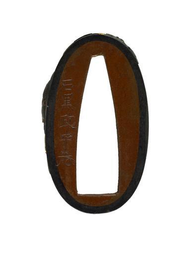 | Keywords: Ishiguro Masatsune II - Fuchi with Diving Duck - Walters 511112 - Mark A.jpg The lower half of a duck is shown as it dived below the surface of the water Reeds overhang the top of the composition This is part of a set with Walters 51 1113 ca 1800 1850 late Edo shakudo gold cm 3 7 l accession number 51 1112 547 William T / Henry Walters Collection Baltimore date and mode of acquisition unknown Walters Art Museum Henry Walters Acquired by William T or Henry Walters Signature Ishiguro Masamori kao place of origin Edo present-day Tokyo Japan Walters Art Museum license Fuchi in the Walters Art Museum Ishiguro Masatsune II Media contributed by the Walters Art Museum needs category review |