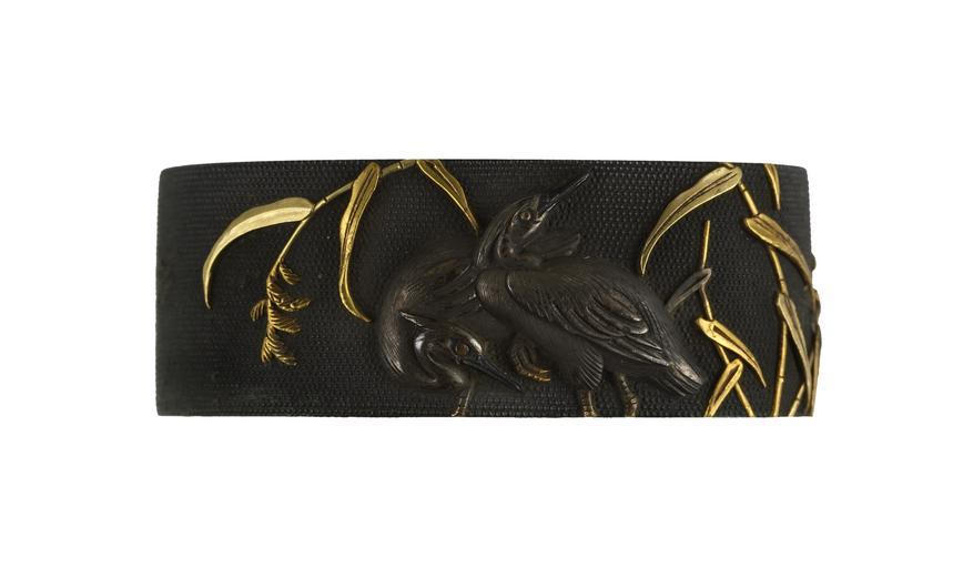 | Keywords: Ishiguro Masayoshi II - Fuchi with Herons and Reeds - Walters 511066.jpg Two herons are depicted standing amongst reeds This is part of a set with Walters 51 1067 century 19 late Edo-Meiji shakudo silver gold cm 3 7 l accession number 51 1066 466 William T / Henry Walters Collection Baltimore date and mode of acquisition unknown Walters Art Museum Henry Walters Acquired by William T or Henry Walters Signature Ishiguro Masayoshi horu place of origin Edo present-day Tokyo Japan Walters Art Museum license Fuchi in the Walters Art Museum Ishiguro Masayoshi II Media contributed by the Walters Art Museum needs category review |