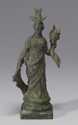 | Keywords: Isis-Fortuna Walters 54751.jpg Walters Art Museum artwork en Each Roman household had a lararium or household shrine in which small bronze figurines of deities including lares the divinities protecting the house were displayed The master of the house would make daily offerings at the shrine as well as more ceremonial offerings on important occasions This small figurine was found together with five others Walters 54 752 54 748 54 750 54 2290 and 54 749 in a lararium at Boscoreale the site of a Roman villa near Pompeii A Genius or priest stood before the household deities Isis-Fortuna Mercury a seated Jupiter Alexander Helios and a standing Jupiter These were divinities the family particularly venerated for the continuing good fortune of the household century 1 AD http //art thewalters org/detail/40870/isis-fortuna/ Roman bronze cm 11 43 5 24 3 49 accession number 54 751 De Prisco Boscoreale/Canessa 1906 by excavation; Henry Walters Baltimore 1906 mode of acquisition unknown; Walters Art Museum 1931 by bequest Acquired by Henry Walters 1912 Pompeii and The Roman Villa National Gallery of Art Washington; Los Angeles County Museum of Art Los Angeles 2008-2009 place of origin Boscoreale Italy Walters Art Museum license 3D LicenseReview http //art thewalters org/detail/40870/isis-fortuna/ TheWalters org Bobamnertiopsis 2013-10-07 Uploaded with UploadWizard Isis in Roman art Roman - Isis-Fortuna - Walters 54751 Fortuna in ancient Roman art Roman - Isis-Fortuna - Walters 54751 Ancient Roman bronze statuettes from Boscoreale in the Walters Art Museum Roman - Isis-Fortuna - Walters 54751 |