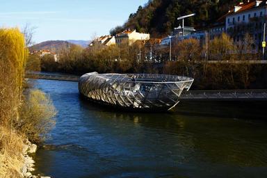 Keywords: island murinsel graz styria austria acconci island metal city of culture mur places of interest