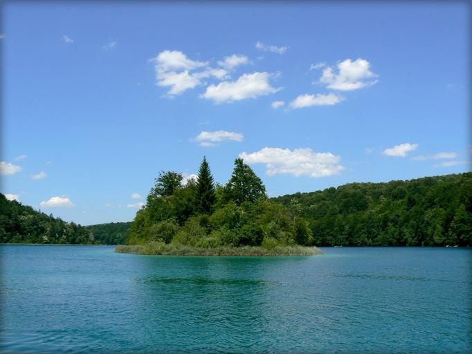 Keywords: island trees lake water sea forest woods paradise idyllic nature sky landscape coastline relaxation tranquil plitvice lakes