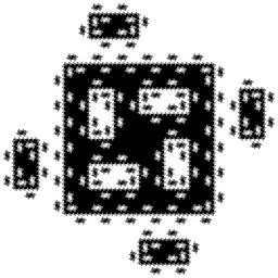 | Keywords: IslandsAndLakesColored.svg en 3rd iteration of L-system called Islands and lakes cs 3 iterace L-systému Ostrovy a jezera own NightElfik Original L-system from book The Algorithmic Beauty of Plants by Przemyslaw Prusinkiewicz and Aristid Lindenmayer Generated with <pre>IslandsAndLakesColored axiom g + 1 f +f +f +f ; angle 90; i 3; palette fff 000; polyReverse 1; f > g+h- g + 1 2 ff +f +ff +f h+gg-h+ g 2 ff -f -ff -f h-ggg; g > f+h- g 2 gg +g +gg +g h+ff-h+ g + 1 2 gg -g -gg -g h-fff; h > hhhhhh; </pre> L-Systems Files by User NightElfik Order 3 |
