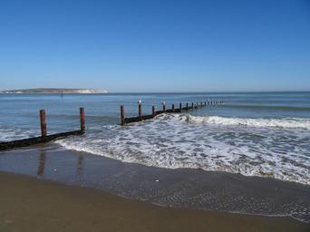 Keywords: isle of wight shanklin beach beach sea waves ripples sky sand seagulls perch