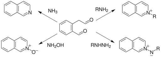 Keywords: Isoquinoline synthesis 1.svg en Isoquinoline synthesis from 2-formylphenyl acetaldehyde Own Choij 2009-09-18 Isoquinoline