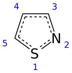 | Keywords: Isothiazole 2D numbered aromatic.svg Skeletal formula of isothiazole with the numbering convention for substituent groups showing the delocalized aromatic bond as a dotted line 2012-09-27 own Jynto other fields c 1 + cc-zero Images by Jynto Isothiazole chemical structures to explain nomenclature |