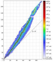| Keywords: Isotopes and half-life eo.svg Plot of atomic isotopes colored by half life Intended as an SVG replacement for File Isotopes and half-life 1 PNG Raw data from http //www nndc bnl gov/nudat2/indx_sigma jsp; the line at the bottom said Nuclear Wallet Cards database version of 6/2/2009 Grafiko de la atomaj izotopoj kolorigitaj laĆ duonvivo Own 2009-09-26 BenRG Public domain <gallery>File Isotopes and half-life svg English</gallery> Isotopes Nuclear physics Diagrams in Esperanto SVG in Esperanto |