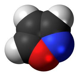 | Keywords: Isoxazole-3D-spacefill.png Space-filling model of the isoxazole molecule a nitrogen-oxygen heterocycle and a simple aromatic ring Colour code 505050 Carbon C black<br> F0F0F0 Hydrogen H white<br> F51E1E Oxygen O red<br> 3C50FA Nitrogen N blue<br> 2011-02-12 own DS Visualizer Jynto talk Ball-and-stick version cc-zero Isoxazole Images by Jynto Space-filling models |