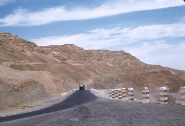 Keywords: outdoor landscape hill sand Road to Dead Sea with rock salt cliffs. Israel. Kodachrome Transparency, c. 1961. Road to Dead Sea with rock salt cliffs. Israel. Kodachrome Transparency, c. 1961.