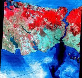 | Keywords: Istanbul, Turkey DVIDS707138.jpg en This June 16 2000 image of Istanbul Turkey show a full 60 by 60 km ASTER scene in the visible and infrared channels Vegetation appears red and urban areas blue-green Bustling Istanbul with its magnificent historical heritage has spanned the divide between Europe and Asia for more than 2 500 years Originally called Byzantium the city was founded in the 7th century BC on the Golden Horn an arm of the narrow Bosporus also spelled Bosphorus Strait which connects the Sea of Marmara to the south with the Black Sea to the north Constantine I made it his capital of the Eastern Roman Empire in AD 330 As Constantinople the strategically located city arose as the preeminent cultural religious and political center of the Western world It reached the height of its wealth and glory in the early 5th century After centuries of decline the city entered another period of tremendous growth and prosperity when as Istanbul it became the capital of the Turkish Ottoman Empire in 1457 Although Turkey moved its capital to Ankara in 1923 Istanbul remains the nation's largest city with a population of over 8 million its commercial center and a major port Two bridges spanning the Bosporus and ships in the busy channel can be seen on the enlargement On the image the water areas have been replaced with a thermal image colder waters are displayed in dark blue warmer areas in light blue Note the dark lines showing boat wakes and the cold water entering the Sea of Marmara from deeper waters of the Bosporus Advanced Spaceborne Thermal Emission and Reflection Radiometer ASTER is one of five Earth-observing instruments launched December 18 1999 on NASA's Terra satellite The instrument was built by Japan's Ministry of International Trade and Industry A joint U S /Japan science team is responsible for validation and calibration of the instrument and the data products Dr Anne Kahle at NASA's Jet Propulsion Laboratory Pasadena Calif is the U S Science team leader; Moshe Pniel of JPL is the project manager ASTER is the only high resolution imaging sensor on Terra The primary goal of the ASTER mission is to obtain high-resolution image data in 14 channels over the entire land surface as well as black and white stereo images With revisit time of between 4 and 16 days ASTER will provide the capability for repeat coverage of changing areas on Earth's surface The broad spectral coverage and high spectral resolution of ASTER will provide scientists in numerous disciplines with critical information for surface mapping and monitoring dynamic conditions and temporal change Example applications are monitoring glacial advances and retreats monitoring potentially active volcanoes identifying crop stress determining cloud morphology and physical properties wetlands Evaluation thermal pollution monitoring coral reef degradation surface temperature mapping of soils and geology and measuring surface heat balance NASA Identifier PLAN-PIA02665 2009-10-14 Glenn Research Center https //www dvidshub net/image/707138 707138 2012-10-10 16 07 WASHINGTON DC US PD-USGov Bosphorus Images from DoD uploaded by Fæ |