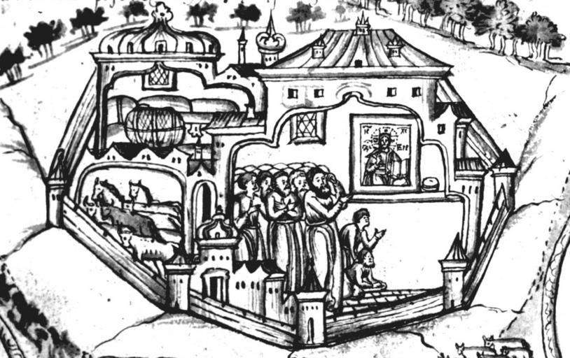 Keywords: IstSib045 1.jpg Казаки в завоеванном Ка ачине Исто ия Сиби ская ультимедиа Цент ГУ http //www mmedia nsu ru/vbook/vbook/obj8/MINIATURES htm 1697 - 1703 С У Ремезов Author died more than 70 years ago - public domain PD-old Remezov Chronicle