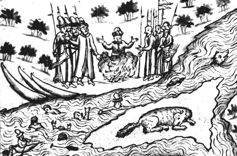 | Keywords: IstSib049 1.jpg  Финал битвы белого и че ного зве я Исто ия Сиби ская  ультимедиа Цент  ГУ http //www mmedia nsu ru/vbook/vbook/obj8/MINIATURES htm 1697 - 1703 С У Ремезов Author died more than 70 years ago - public domain PD-old Remezov Chronicle |