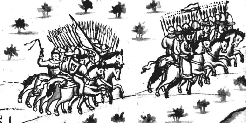 Keywords: IstSib060 1.jpg Побег Кучума из го ода Кашлык Исто ия Сиби ская ультимедиа Цент ГУ http //www mmedia nsu ru/vbook/vbook/obj8/MINIATURES htm 1697 - 1703 С У Ремезов Author died more than 70 years ago - public domain PD-old Remezov Chronicle
