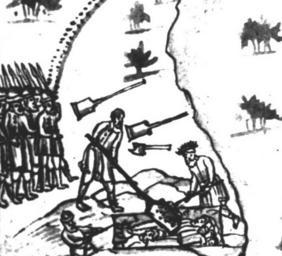 | Keywords: IstSib065 2.jpg  Похо оны погибших казаков на ца ском кладбище на Саусканском мысу Исто ия Сиби ская  ультимедиа Цент  ГУ http //www mmedia nsu ru/vbook/vbook/obj8/MINIATURES htm 1697 - 1703 С У Ремезов Author died more than 70 years ago - public domain PD-old Remezov Chronicle |