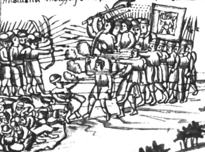 | Keywords: IstSib072 1.jpg Бой казаков с от ядом кодских князей Алачевых Исто ия Сиби ская ультимедиа Цент ГУ http //www mmedia nsu ru/vbook/vbook/obj8/MINIATURES htm 1697 - 1703 С У Ремезов Author died more than 70 years ago - public domain PD-old Remezov Chronicle |