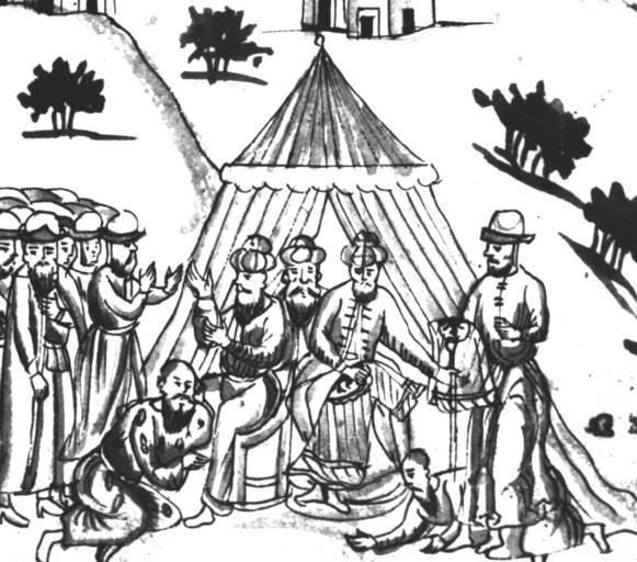 | Keywords: IstSib090 1.jpg  Тата ы делят между собой платье Е мака Исто ия Сиби ская  ультимедиа Цент  ГУ http //www mmedia nsu ru/vbook/vbook/obj8/MINIATURES htm 1697 - 1703 С У Ремезов Author died more than 70 years ago - public domain PD-old Remezov Chronicle |