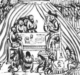 | Keywords: IstSib095 1.jpg  Аблай тайша  ассказывает о посме тных чудесах Е мака Исто ия Сиби ская  ультимедиа Цент  ГУ http //www mmedia nsu ru/vbook/vbook/obj8/MINIATURES htm 1697 - 1703 С У Ремезов Author died more than 70 years ago - public domain PD-old Remezov Chronicle |