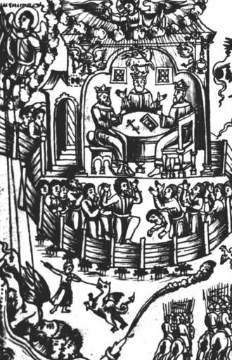 | Keywords: IstSib113 1.jpg  Воплощение в Сиби и д евнего п о очества Исаии Исто ия Сиби ская  ультимедиа Цент  ГУ http //www mmedia nsu ru/vbook/vbook/obj8/MINIATURES htm 1697 - 1703 С У Ремезов Author died more than 70 years ago - public domain PD-old Remezov Chronicle |