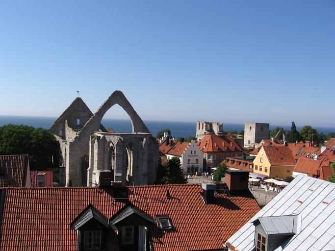| Keywords: ISVyS-tKarin.JPG en View of the ruins of St Catherine church at Main square Visby Gotland Sweden In the foreground Ryska Gränd 1 tile roof and 2A tin roof right 57 63992 18 29693 region SE_heading NW Saint Catherine in Visby Churches in Sweden photographed in 2006 Ryska gränd |