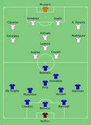 | Keywords: ITA-URU 2014-06-24.svg 2014 FIFA World Cup Group D match between Italy and Uruguay 2014-06-24 20 16 20 own <br />Line-ups http //resources fifa com/mm/document/tournament/competition/02/38/36/84/eng_39_0624_ita-uru_tacticalstartlist pdf Davykamanzi cc-zero Uploaded with UploadWizard FIFA World Cup 2014 line-ups Italy and Uruguay match at the FIFA World Cup 2014-06-24 Uruguay national football team line-ups Italy national association football team line-ups Luis Suárez in 2014 Fernando Muslera in 2014 Edinson Cavani in 2014 Nicolás Lodeiro in 2014 Cristian Rodríguez in 2014 Egidio Arévalo Ríos in 2014 Álvaro Pereira in 2014 Martín Cáceres in 2014 Diego Godín in 2014 José María Giménez Álvaro Rafael González |
