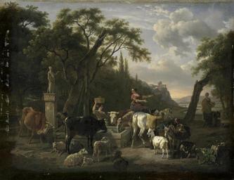 MAKE A MEME View Large Image Italiaans landschap met herders en vee bij een drenkplaats Rijksmuseum SK-C-292.jpeg accession number SK-C-292 Jean Louis Demarne credit line nl Italiaans landschap met een bron waarbij herders en herderinnen met vee koeien schapen geiten ...