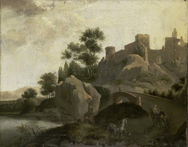 | Keywords: Italiaans landschap Rijksmuseum SK-A-745.jpeg accession number SK-A-745 J G Schieblius credit line nl Italiaans landschap met een weg die langs water over een stenen brug een heuvel op naar de ruïne van een burcht loopt Op de weg een man en een vrouw op muilezels en een wit paard zonder berijder drager Height cm 52 drager Width cm 66 5 exhibition history Institution Rijksmuseum Technique oil canvas object history Acquisition 1882 object type Potential derivatives exist check http //commons wikimedia org/w/index php search Rijksmuseum+SK-A-745 this search PD-US PD-old Data and photography rights All data and all images made available through the API are either in the public domain or are subject to a CC0 license https //www rijksmuseum nl/en/api/terms-and-conditions-of-use cc-zero place of creation http //www rijksmuseum nl/collectie/SK-A-745 Italiaans landschap Q17322631 Uploaded with GWToolset Italiaans landschap Rijksmuseum SK-A-745 http //www rijksmuseum nl/media/assets/SK-A-745 Images uploaded by Fæ Images from the Rijksmuseum Dutch Golden Age paintings in the Rijksmuseum Amsterdam Dutch 18th-century paintings in the Rijksmuseum Amsterdam J G Schieblius |