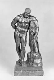 | Keywords: Italian - The Farnese Hercules - Walters 54727.jpg Walters Art Museum artwork Anonymous Italian <br/> This statuette depicting the demigod Hercules resting between his labors is a reduction of a colossal marble statue over 10 ft high executed by the sculptor Glykon in the early 3rd century It in turn was modeled after a lost original 4th-century BC bronze statue by the famous Greek sculptor Lysippus In 1546 Glykon's statue was discovered during an excavation in Rome and was displayed in the garden of the palace belonging to the Farnese family hence its name it is now in the National Archeological Museum Naples The statue with its impressive rendering of Hercules's physique was instantly famous and admiration for it was reflected in the widespread ownership of small and full-size copies While in Rome the great Flemish painter Peter Paul Rubens 1576-1640 made drawings of the colossus that he used for his paintings There was even a full-size plaster cast in a 17th-century collection in Antwerp ca 1650 Baroque bronze with marble base cm 33 6 accession number 54 727 19489 Raoul Heilbronner Paris by purchase Henry Walters Baltimore 1909 by purchase Walters Art Museum Henry Walters Acquired by Henry Walters 1909 Children of Mercury The Education of Artists in the Sixteenth and Seventeenth Centuries Brown University Bell Gallery List Art Center Providence 1984 place of origin Rome Italy Walters Art Museum license Baroque sculpture in the Walters Art Museum Ancient Roman sculptures in the Walters Art Museum Ancient Greek sculptures in the Walters Art Museum Italian art in the Walters Art Museum Media contributed by the Walters Art Museum needs artist review Replicas of the Hercules Farnese |