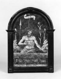 | Keywords: Italian - The Man of Sorrows - Walters 44277.jpg Christ is seated in a marble sarcophagus behind him are the cross and the lance the reed and two scourges Above is the titulus inscribed INRI At either end of the sarcophagus a group of rocks appears in the background early Other date century 16 technique painted enamel copper cm 13 1 9 1 accession number 44 277 2355 Edward Cheney date and mode of acquisition unknown Francis Capel-Cure of Badger Hall Shropshire England date and mode of acquisition unknown Sale London May 4 1905 no 33 George Robinson Harding London date of acquisition unknown by purchase Henry Walters city Baltimore Walters Art Museum Henry Walters Acquired by Henry Walters 1911 place of origin Florence Italy Walters Art Museum license Italian Renaissance paintings in the Walters Art Museum Italian art in the Walters Art Museum Media contributed by the Walters Art Museum needs category review Painted enamel art in the Walters Art Museum |