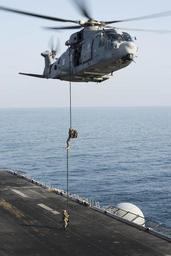 | Keywords: Italian marines fast rope from EH101 onto USS Boxer (LHD-4) in 2013.JPG en Italian marines fast rope from an Italian AgustaWestland EH101 helicopter onto the flight deck aboard the U S Navy amphibious assault ship USS Boxer LHD-4 in the Arabian Gulf 2013-12-19 131219-N-JP249-053 Navy http //www navy mil/view_image asp id 167745 U S Navy photo by Mass Communication Specialist 2nd Class Kenan O'Connor PD-USGov-Military-Navy AgustaWestland EH101 of Italy 2-21 aircraft Aboard USS Boxer LHD-4 Brigade San Marco |