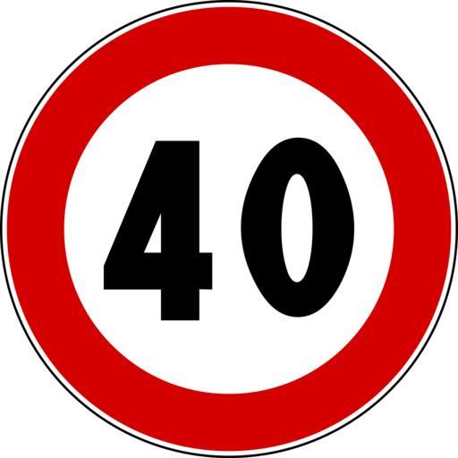 | View Original: | Italian traffic signs - limite di velocità 40.svg (200x200) | |||
