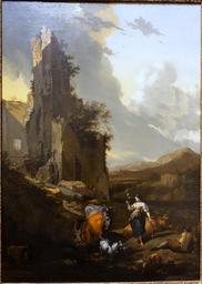 | View Original: | Italianate Landscape with Animals, a Shepherd, and a Peasant Woman Holding a Distaff, workshop of Nicolaes Pietersz Berchem, undated, oil on canvas - Blanton Museum of Art - Austin, Texas - DSC07814.jpg (-3174x4478) | |||