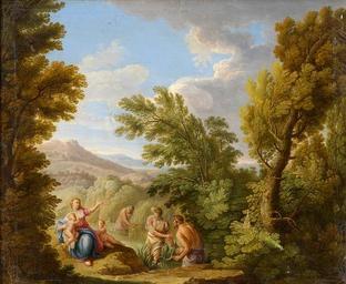 | Keywords: Italienische Landschaft mit Latona.jpg Artwork langSwitch Unbekannter Meister Unknown Painter century 18 Latona verwandelt die lykischen Bauern in Frösche Latona turning the Lycian peasants into frogs Oil canvas cm 64 76 http //www duesseldorfer-auktionshaus de/ Düsseldorfer Auktionshaus 2011/1 century 18 PD-old-100 Images from Düsseldorfer Auktionshaus Leto Landscape paintings of Italy | ||||