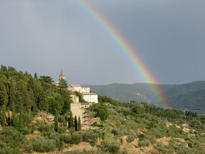 Keywords: italy castle rainbow summer monument historical cypresses landscape old green