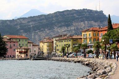 Keywords: italy garda torbole mountains boats bank promenade