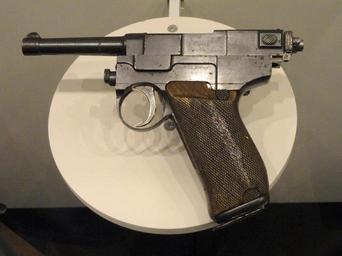 | Keywords: Italy Glisentia Model 1910 pistol, 9 mm, seven cartridges - National World War I Museum - Kansas City, MO - DSC07472.JPG Handgun exhibited in the National World War I Museum at the Liberty Memorial 100 W 26th Street Kansas City Missouri USA Photography was permitted in the museum without restriction Daderot 2011-11-01 13 42 46 Daderot Handguns in the National World War I Museum Glisenti Modello 1910 | ||||