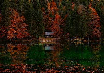 Keywords: italy seasons autumn fall foliage forest trees woods hdr colorful fallen leaves lake water cottage cabin house hideaway idyllic picturesque nature outdoors country countryside wilderness rural vacation reflections solitude serenity