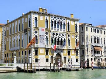 Keywords: italy venice grand canal palace ca 'd'oro reflection pier facades architecture yellow
