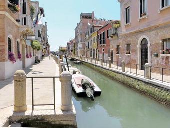 Keywords: italy venice rio boat wharf promenade water's edge channels