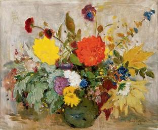 | Keywords: Iványi Still Life with Flowers 1935.jpg Artwork Creator Béla Iványi-Grünwald 1935 Oil on canvas Size cm 60 50 Private collection object history credit line bottom right Iványi Grünwald Béla 1935 accession number 000405 http //www gaborkovacsartcollection com/ Gábor Kovács Art Collection http //www gaborkovacsartcollection com/artworks/ivanyi-grunwald-bela/still-life-with-flowers Info http //www gaborkovacsartcollection com/sites/default/files/imagecache/art_node_600/art/upload/000405_s jpg Pic PD-old-70 Paintings by Béla Iványi-Grünwald in private collections Still life paintings by Béla Iványi-Grünwald 1935 paintings Paintings of flowers |