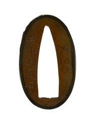 | Keywords: Iwamoto Konkan - Fuchi with Halberd with Dragon's Head - Walters 51944 - Mark A.jpg This fuchi shows the blade of a halberd with a dragon head decoration at its base This halberd is the weapon of the 2nd-century Chinese general Kanyu Ch Guan Yu Kuan Yu A fan of feathers hauchiwa is on the back Kanyu is depicted on the matching kashira Walters 51 945 between 1744 1801 Edo shibuichi gold copper cm 3 7 l accession number 51 944 23289 William T / Henry Walters Collection Baltimore date and mode of acquisition unknown Walters Art Museum Henry Walters Acquired by William T or Henry Walters Signature Iwamoto Konkan kao place of origin Edo present-day Tokyo Japan Walters Art Museum license Fuchi in the Walters Art Museum Iwamoto Konkan Media contributed by the Walters Art Museum needs category review |