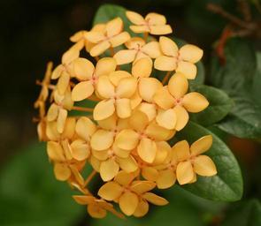 Keywords: Ixora maui sunset.jpg Jungle Geranium Ixora of cultivar Maui Sunset Taken by uploader user brighterorange 04 27 19 July 2007 UTC Tom Murphy VII use freely Yellow flowers