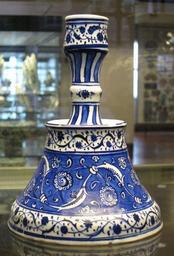 | Keywords: Iznik candle holder ca 1525.jpg Iznik candlestick ~ 1525 Fritware with cobalt blue decoration under a clear glaze Height 20 4 cm diameter 15 5 foot Institution British Museum G34/29 Carswell John 2006 Iznik Pottery London British Museum Press p 38 Fig 28 ISBN 978-0-7141-2441-4 <br>Atasoy Nurhan; Raby Julian 1989 Iznik The Pottery of Ottoman Turkey London Alexandra Press p 105 Figs 125 310 ISBN 978-1-85669-054-6 <br> citation Lane Arthur 1957 The Ottoman Pottery of Isnik Ars Orientalis 2 247 “281 4629039 object history credit line The reserved design around the middle of the base is very similar to that on the foot of a hemispherical basin also in the British Museum Inv number http //www britishmuseum org/research/search_the_collection_database/search_object_details aspx objectid 236611 partid 1 G 1983 8 The pattern above and below are very similar to that on the foot of a basin in the Fitzwilliam Museum Cambridge Inv number http //www fitzmuseum cam ac uk/opac/search/cataloguedetail html priref 131057 _function_ xslt _limit_ 10 C 5-1970 <br>This is one of a pair of candlesticks The other candlestick has an Inventory number of 1878 1230 521 Atasoy Raby have the Inventory numbers switched Arthur Lane 1957 p261 considered that the two candlesticks were forgeries Raby p105 strongly disagreed and noted that Lane unaccountably dismissed as a 'palpable forgery' accession number http //www britishmuseum org/research/search_the_collection_database/search_object_details aspx objectid 239210 partid 1 1878 1230 522 Aa77zz 2011 other versions cc-zero İznik ceramics Room 34 British Museum Uploaded with UploadWizard Candlesticks in London Plant-scroll ornament 2011 in the London Borough of Camden |