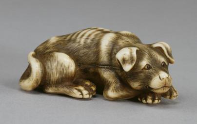 | Keywords: Izumiya Tomotada - Netsuke in the Form of a Dog - Walters 711020 - Three Quarter.jpg Although Chinese folklore disparaged dogs in Japan they came to be regarded positively as dispellers of evil and portenders of easy childbirth They symbolize the eleventh year in the Chinese and Japanese 12-year cycle In this example the crouching animal wears a rope leash Tomotada a gifted animal carver was particularly noted for carvings of oxen with rope halters He attracted many pupils who were permitted to sign their own work as his late Other date century 18 Edo ivory cm 5 3 l accession number 71 1020 19969 William T Walters Baltimore date and mode of acquisition unknown Henry Walters city Baltimore Walters Art Museum Henry Walters Acquired by William T Walters Signature Tomotada Netsuke Miniature Sculpture of Japan The Fabergé Menagerie The Walters Art Museum Baltimore; Columbus Museum of Art Columbus; Portland Art Museum Portland 2003-2004 place of origin Kyoto Japan Walters Art Museum license Netsuke Miniature Sculpture of Japan Art of Japan in the Walters Art Museum Media from the Walters Art Museum no creator template Media contributed by the Walters Art Museum needs category review |