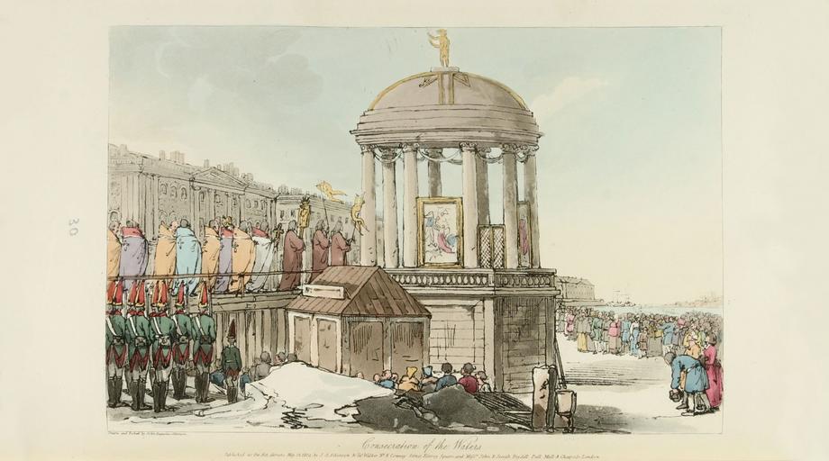 | Keywords: J. A. Atkinson. Benediction of the waters near the Winter palace in S.-Petersbourg. 1804.jpg Дж О Аткинсон 1804 A picturesque representation of manners suscoms and amusements of the russians London 1804 T 3 PD-old-100 Uploaded with UploadWizard John Augustus Atkinson |