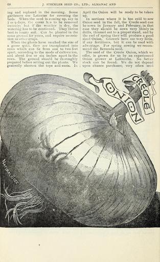 | Keywords: J. Steckler Seed Co., Ltd. garden manual 1900 (16387092467).jpg 68 <br> J STECKXER SEED CO I/fD ALMANAC AND <br> ing and replaced in the morning Some <br> gardeners use Latanias for covering the <br> beds When the seed is coming up say in <br> 7 or 9 daj's the cover has to be removed <br> entirely; but if the weather is dry the <br> watering has to be continued They thrive <br> best in loamy soil Can be planted in the <br> same ground for years and require no rota- <br> tion as other crops <br> When the plants have reached the size of <br> a goose quiil they are transplanted into <br> rows which can be from one to two feet <br> apart according to the mode of cultivation <br> and about five or six inches apart in the <br> rows The ground should be thoroughly <br> prepared before setting out the plants We <br> generally shorten the tops and roots In <br> April the Onion will be ready to be taken <br> In sections where it is too cold to sow <br> Onion seed in the fall the Creole seed can <br> be sown in January and February; in that <br> case they should be sown very thinly in <br> drills thinned out to a proper stand and by <br> the end of spring they will produce a good <br> sized Onion Growers here use very little <br> if any fertilizers but it can be used with <br> advantage For spring sowing we recom- <br> mend the Bermuda seed <br> The seed of the Creole Onion which we <br> offer is grown for us by an experienced <br> Onion grower at Lafourche No better <br> stock can be found We do not depend <br> upon chance purchases; very often seed 43933569 150250 78709 Page 68 Text http //www biodiversitylibrary org/page/43933569 1900 10 5962/bhl title 78709 Henry G Gilbert Nursery and Seed Trade Catalog Collection ; J Steckler Seed Co Biodiversity Heritage Library J Steckler Seed Co Ltd garden manual 1900 dealers in vegetable flower field and grass seeds Garden Stories Catalogs J Steckler Seed Co Seed industry and trade Seeds Trade catalogs Vegetables U S Department of Agriculture National Agricultural Library bhl page 43933569 dc identifier http //biodiversitylibrary org/page/43933569 bhlGardenStories Onions BHLinbloom j steckler seed co u s department of agriculture national agricultural library bhlgardenstories bhlinbloom Information field Flickr posted date ISOdate 2015-02-18 CC-BY-2 0 BioDivLibrary https //flickr com/photos/61021753 N02/16387092467 2015-08-24 02 54 18 cc-by-2 0 PD-old-70-1923 Onions J Steckler Seed Co Ltd garden manual 1900 Photos uploaded from Flickr by Fæ using a script |