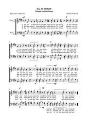 | Keywords: Ja, vi elsker.svg en Scores for the Norwegian national anthem Ja vi elsker dette landet Melody in E major for male choir written by Rikard Nordraak Text by Bjørnstjerne Bjørnson no Noter for Norges nasjonalsang Ja vi elsker dette landet opprinnelig skrevet for mannskor i E-dur av Rikard Nordraak Tekst av Bjørnstjerne Bjørnson en Written in 1864 Uploaded 2011-10-04 en Made with GNU LilyPond by http //forlag studentersangforeningen no/noter html Den norske Studentersangforening the official male choir at University of Oslo no Produsert med GNU LilyPond av http //forlag studentersangforeningen no/noter html Den norske Studentersangforening Rikard Nordraak 1842 “1866 File Anthem of Norway jpg in B major PD-old-100 GNU LilyPond images Uploaded with UploadWizard Rikard Nordraak Sheet music from Norway Anthems of Norway National anthem sheets |