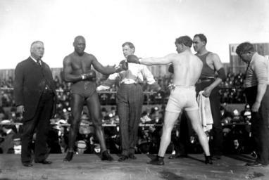 | Keywords: Jack Johnson & Jim Flynn, 1912.JPG Image of the World Heavyweight Championship Boxing ring introductions prior to the bout between Jack Johnson Fireman Jim Flynn which took place in Las Vegas New Mexico Renown fight announcer Billy Jordan shown on the far left http //www ebay com/itm/1912-WORLD-BOXING-CHAMPION-JACK-JOHNSON-v-FIREMAN-JIM-FLYNN-GLASS-PLATE-NEGATIVE-/361333878122 ebay 1912-07-04 unattributed PD-old Jack Johnson Fireman Jim Flynn 1912 photographs 1912 in sports in the United States |