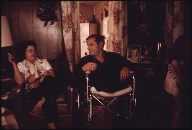 | Keywords: JACK SMITH, 42, A DISABLED MINER FROM RHODELL, WEST VIRGINIA NEAR BECKLEY, WITH HIS WIFE, DELLA MAE - NARA - 556576.jpg Scope and content JACK SMITH 42 A DISABLED MINER FROM RHODELL WEST VIRGINIA NEAR BECKLEY WITH HIS WIFE DELLA MAE HIS LEGS WERE CRUSHED BY A MINE ROOF CAVE-IN AFTER WORKING ONE YEAR BUT IT TOOK 18 YEARS TO RECEIVE WORKMEN's COMPENSATION IN ADDITION TO THOSE BENEFITS HE MAKES MONEY AS THE OPERATOR OF A BEER JOINT A BLOCK FROM HIS HOME BECAUSE OF THEIR LENGTHY FIGHT FOR COMPENSATION THE SMITHS HAD TO GO ON WELFARE FOR A TIME A MEMORY WHICH MAKES THEM BITTER AND IS A FREQUENT COMPLAINT OF OTHER MINERS WHO ARE INJURED General notes 556576 Local identifier 412-DA-14124 Environmental Protection Agency 12/02/1970 - NARA-Author Corn Jack 1929- Photographer 8464440 <br /> Rhodell Raleigh county West Virginia United States North and Central America inhabited place 3402357 37 6 -81 3 <br /> Still Picture Records Section Special Media Archives Services Division NWCS-S National Archives at College Park 8601 Adelphi Road College Park MD 20740-6001 06/1974 Record group Record Group 412 Records of the Environmental Protection Agency 1944 - 2006 Record group ARC 708 DOCUMERICA The Environmental Protection Agency's Program to Photographically Document Subjects of Environmental Concern compiled 1972 - 1977 Series ARC 542493 File unit File unit ARC Variant control numbers Agency-Assigned Identifier 236/24/014124<br /> NAIL Control Number NWDNS-412-DA-14124 Other versions <gallery> File JACK_SMITH _42 _A_DISABLED_MINER_FROM_RHODELL _WEST_VIRGINIA_NEAR_BECKLEY _WITH_HIS_WIFE _DELLA_MAE_-_NARA_-_556576 tif tif File JACK_SMITH _42 _A_DISABLED_MINER_FROM_RHODELL _WEST_VIRGINIA_NEAR_BECKLEY _WITH_HIS_WIFE _DELLA_MAE_-_NARA_-_556576 jpg jpg </gallery> NARA-cooperation PD-USGov West Virginia |